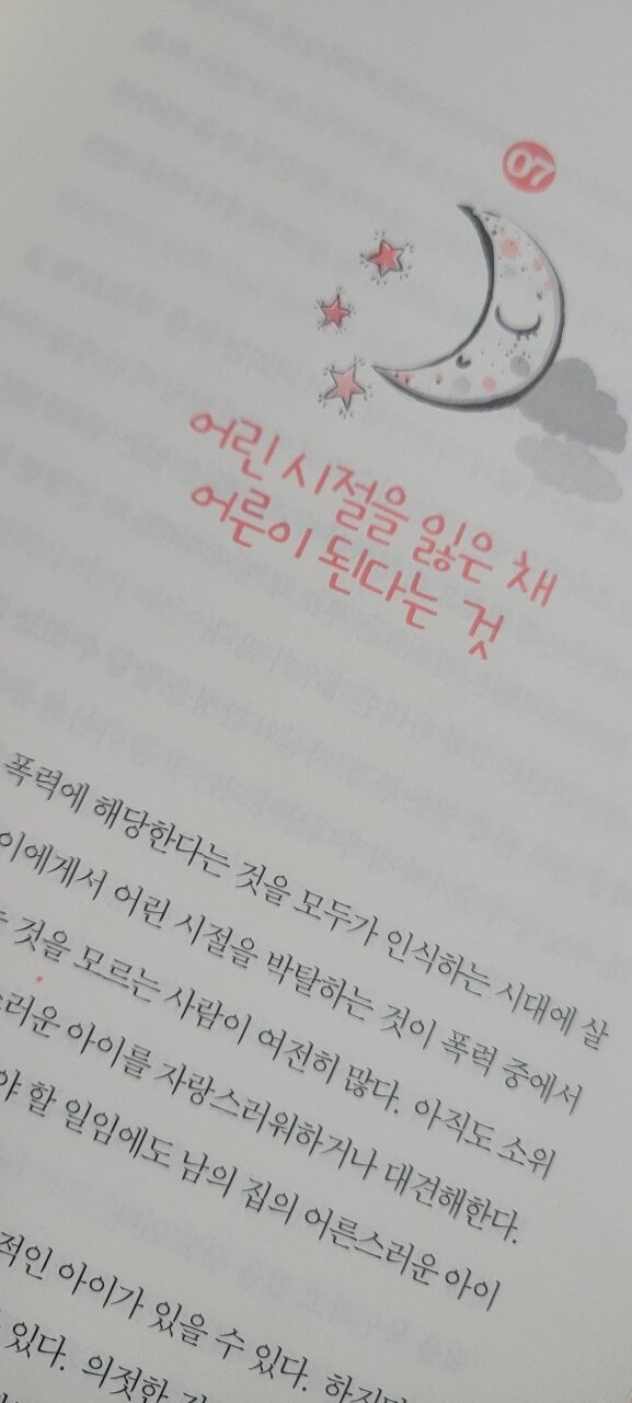 그렇지만, 내가 해결하지 못하는 부분과 아이의 심리적 행동을 보듬어줄 수 있는 육아서인 것 같아 도움이 많이 되었다.