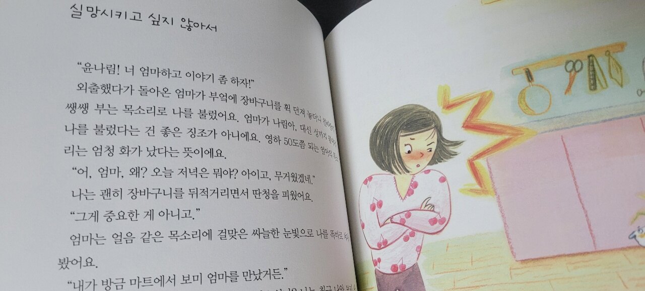 "왜 내가 하고 싶은 거 하면 안 돼? 왜 내가 뭘 하든, 엄마는 다 반대해? 왜 나는 엄마 말만 들어야 하냐고. 엄마는 내 말 한마디도 안 들으면서...."p47