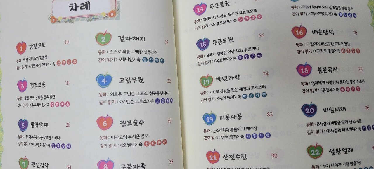 아이가 원하는 차례대로 한 장씩 넘기면서 고사성어를 습득할 수 있어요.