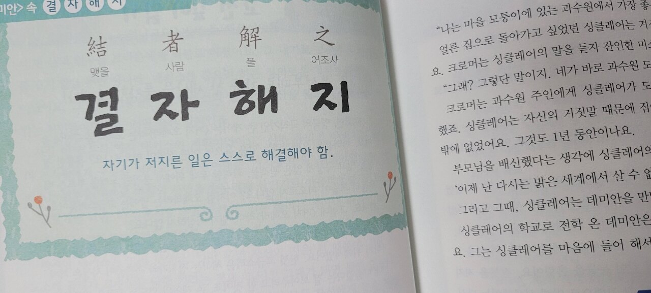 내가 한 일에 대한 책임을 지자는 의미의 결자해지.
