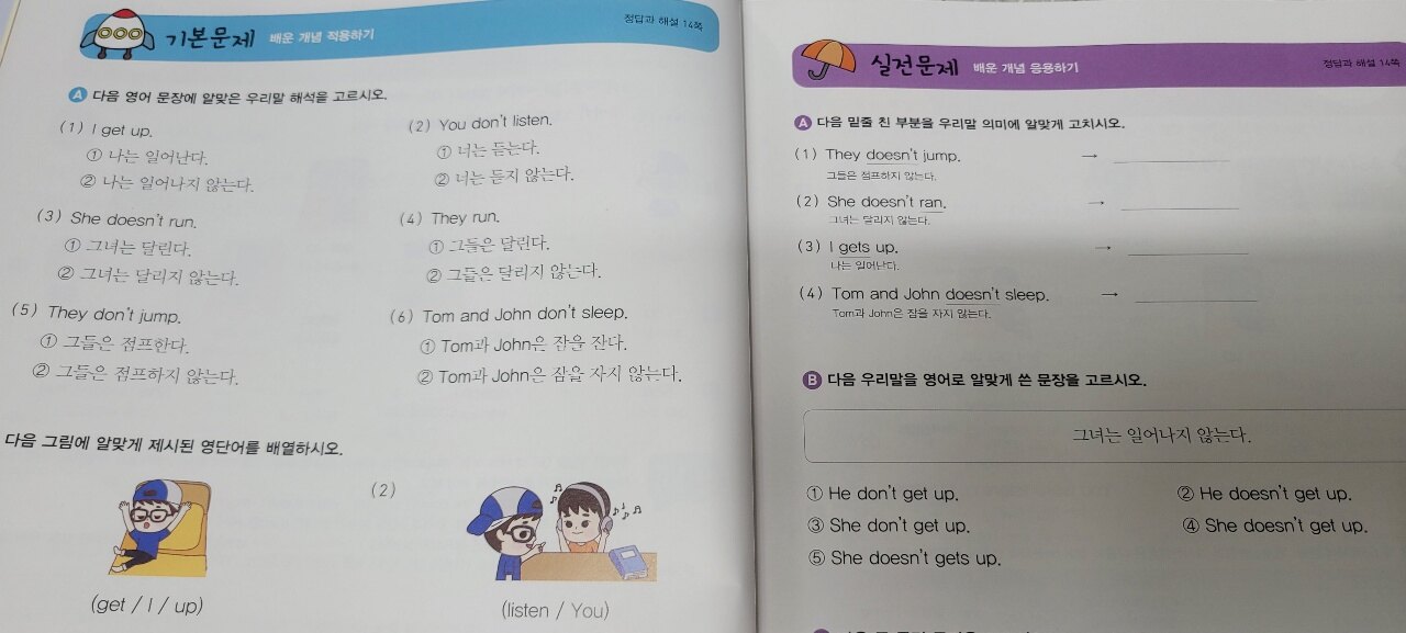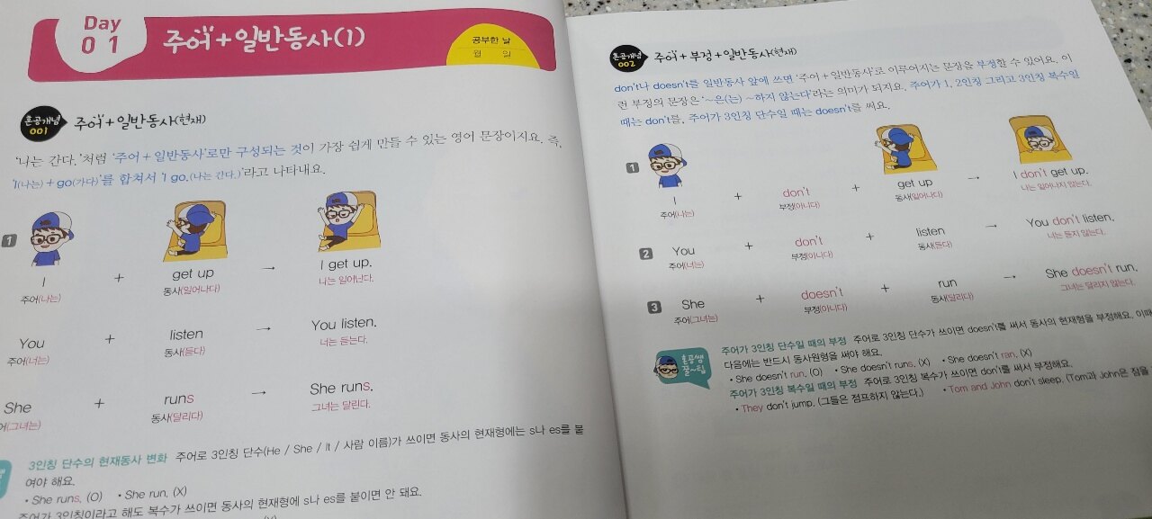 기초를 배우니 기초답게 먼저 주어+일반동사가 나온다.