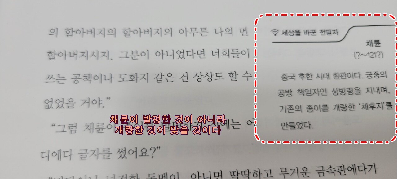 최초로 종이를 발명했다는 채륜은 사실상 발명이 아니라 개량한 것에 더 가깝다고 한다.