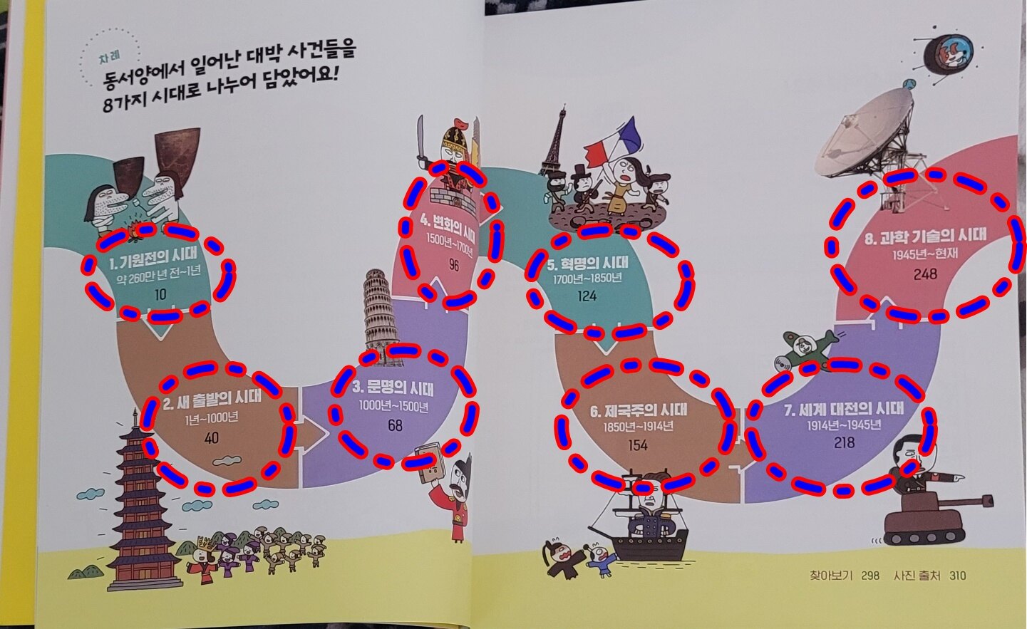 동서양에서 일어난 사건들을 8가지로 나누어보았는데요.
