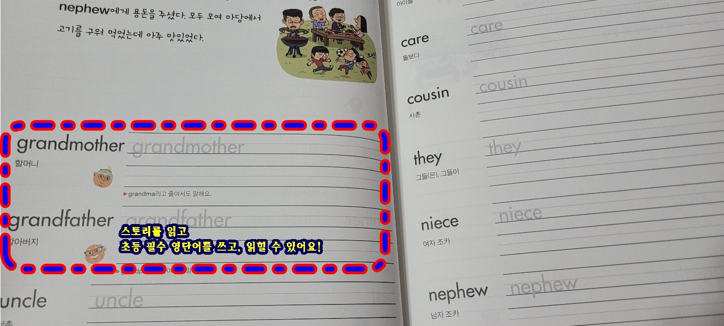 그 부분을 보완한 게 다락원의 한 권으로 끝내는 초등 영단어 따라 쓰기에요.