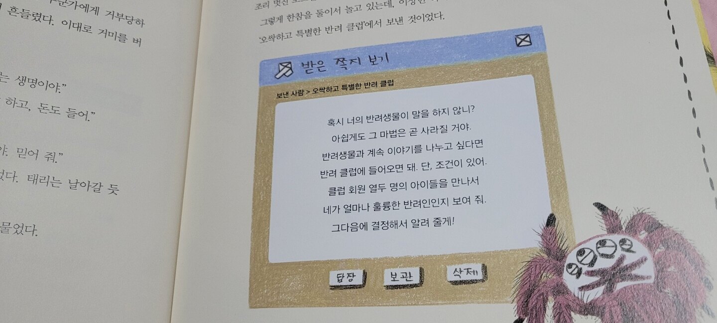 그러던 어느 날 태리와 촘촘이에게 이상한 쪽지 한 통이 도착했어요.