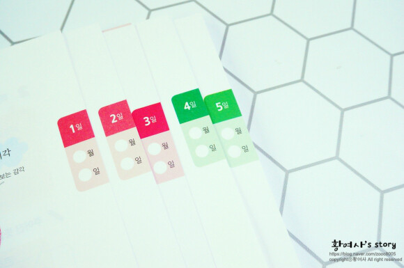 아이들이 스스로 구분할 수 있도록 일자 표시도 되어 있어서, 자기주도학습도 가능해요.