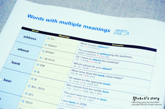 두가지 이상의 뜻을 가진 단어들이 정리되어 있어요.