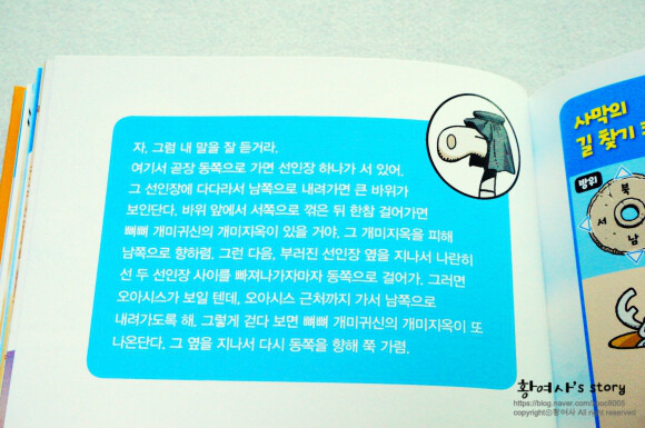 대장의 말이 끝나니 책 속에서 사막의 길찾기 퀴즈가 나왔어요.