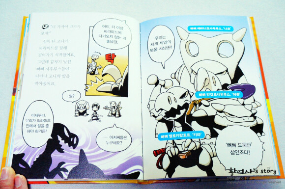 세 친구를 지켜보던 뼈뼈 병사는 곧장 달려가 뼈뼈 아누비스에게 피라미드 안에 삼총사가 들어온 사실을 알렸어요.
