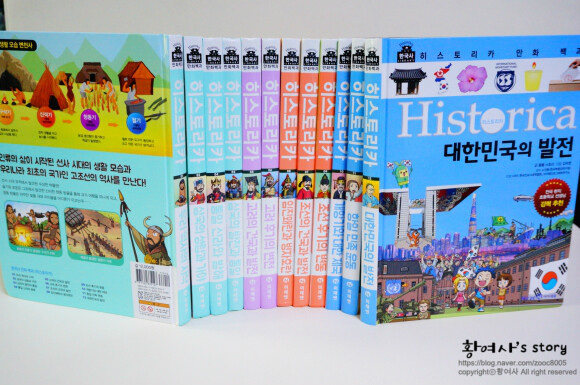 시대별로 책등 색상도 구분되어 있어서  책장에 꽂혀있는 히스토리카 만화백과를 보고 있으면