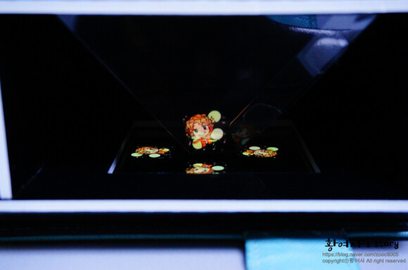 아이세움 카페에 가시면 이렇게 움직이는 홀로그램도 직접 해 볼 수 있어요.