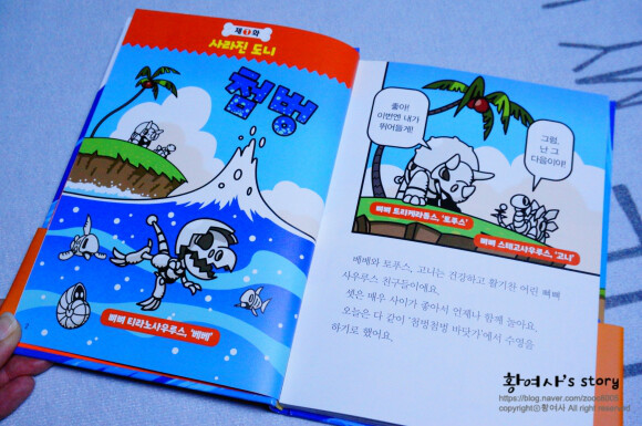 그 영향은 바로 지난달에 처음 읽기 시작한 초등코믹북 뼈뼈사우루스 때문이랍니다.