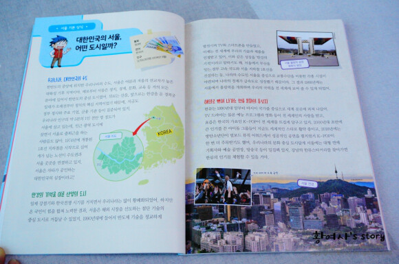 대한민국의 서울이 어떤 도시인지, 어떤 음식들이 맛있는지 자세히 적혀있어요.