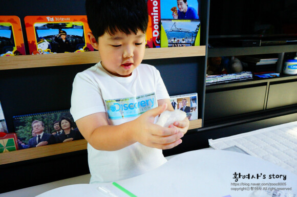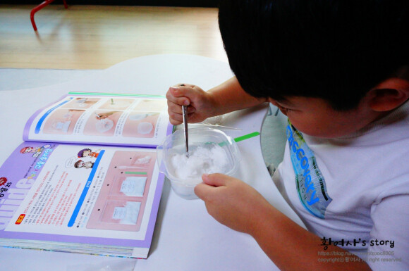 드디어 말캉말캉 슬라임만들기가 완성되었어요.