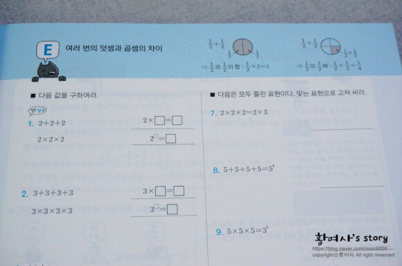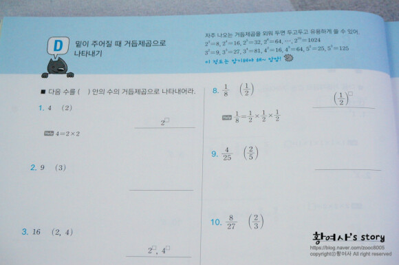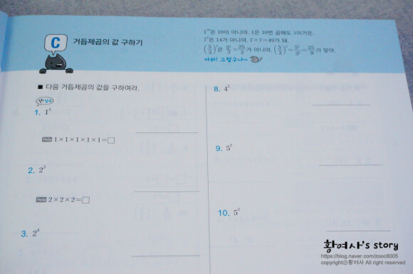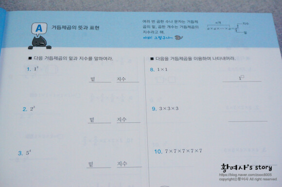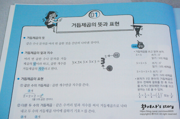 거듭제곱의 표현도 다양하게 풀이되어 있고