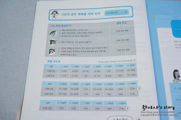 14일 진도는 1일에 1~3과씩,  20일 진도는 1일에 1~2과씩