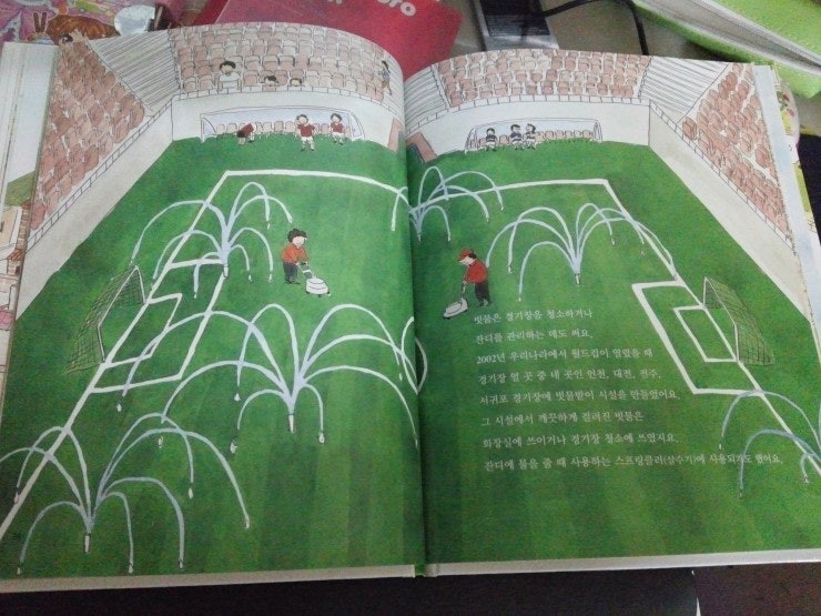 빗물은 경기장을 청소하거나 잔디를 관리하는 데도 써요.