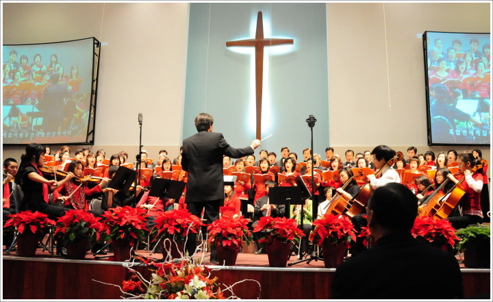 오늘은 예배순서에 우리 교회가 자랑하는 오케스트라와 성가대원의 협연으로 크리스마스 칸타타가 공연되는 날이다.