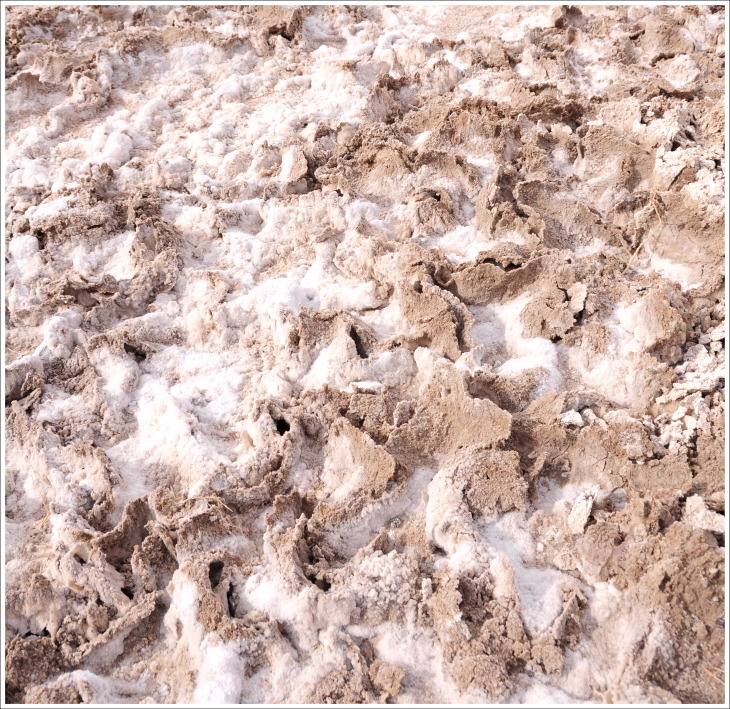 강한 염분이 마치 곰팡이가 자라듯 융기되는 모양은 참 신비로운 자연의 현상.
