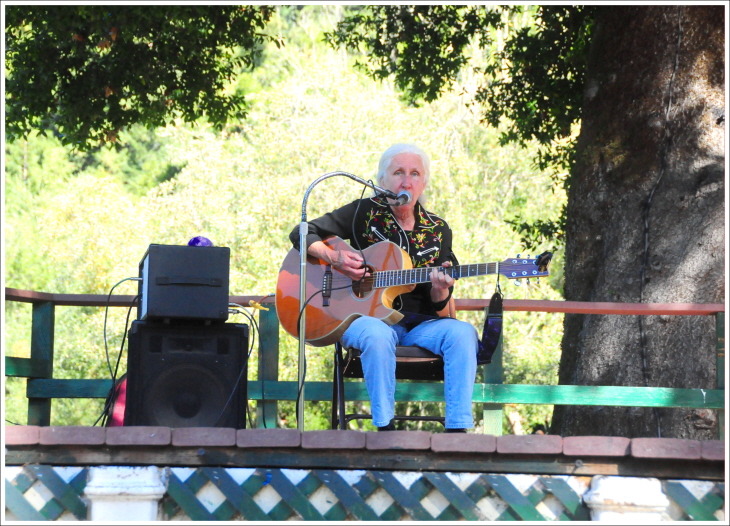 아주 커다란 오크트리 아래의 무대에선 이동네의 할머니 가수가 나와서 우리를 위해 노래를 불러 준다.