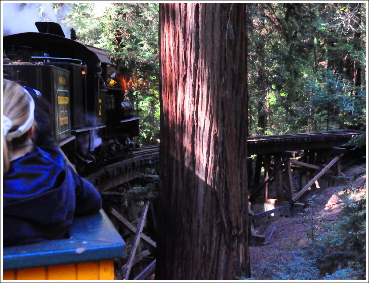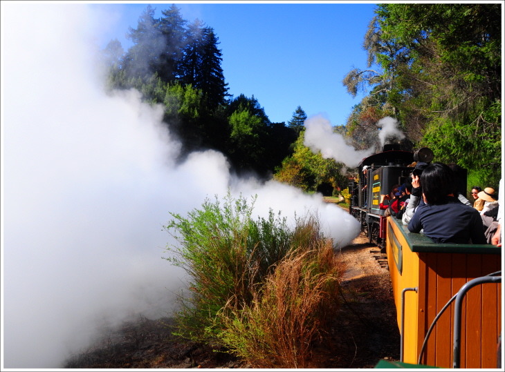 와이너리 투어 삼일째 날은 울창한 레드우드 숲속을 달리는 증기기관차를 타는 일이다.