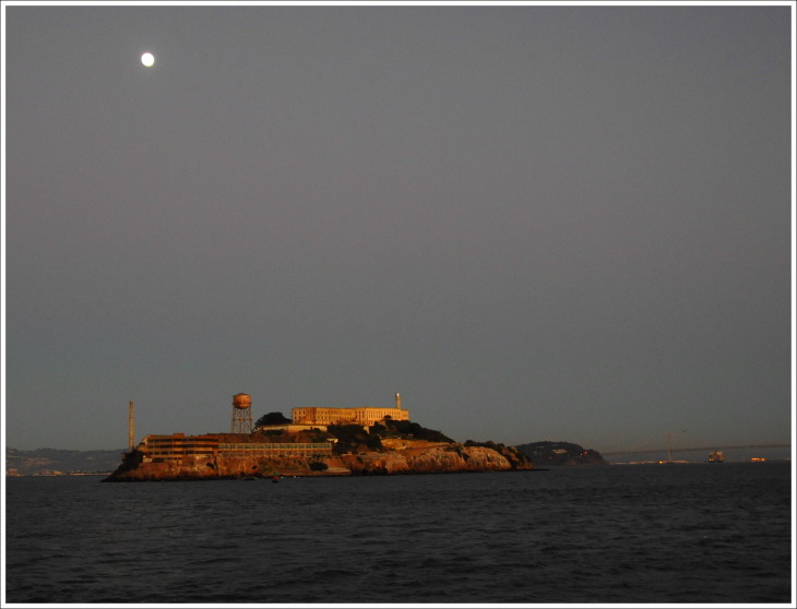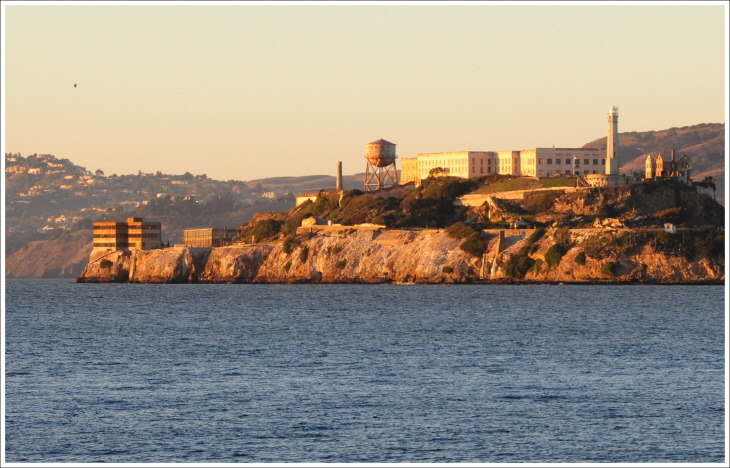 멀리 알카트래즈 섬이 석양에 빛난다.