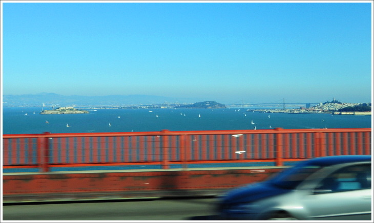 차창밖으로 펼처지는 아름다운 샌프란시스코 만의 그림같은 풍경에 모두들 환호성을 지른다.