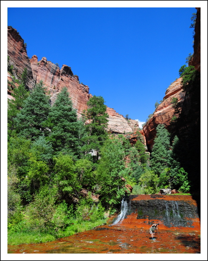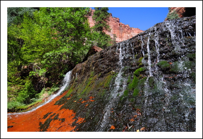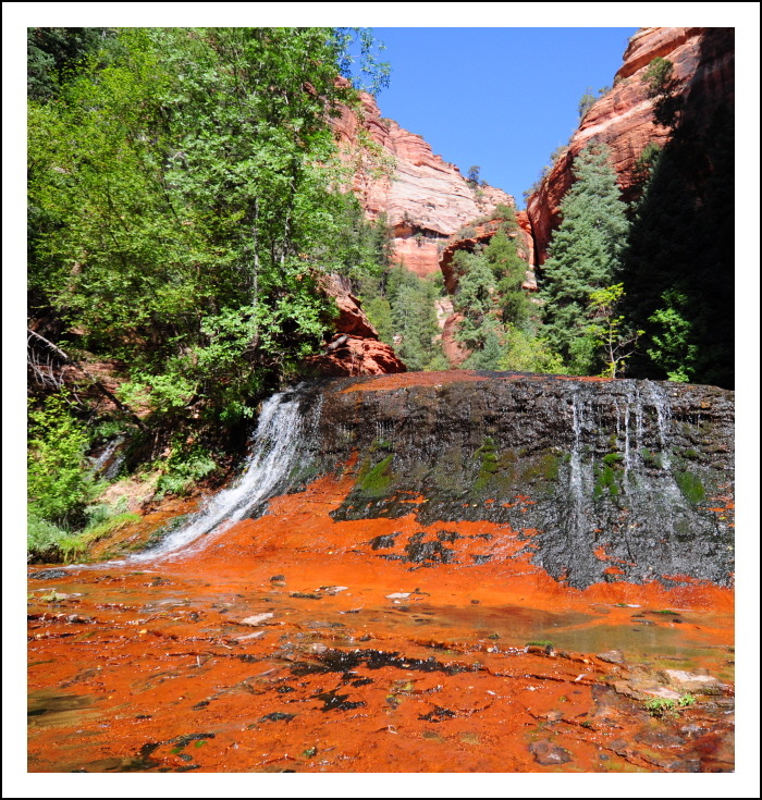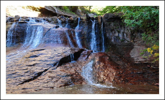 붉은 바위위로 흐르는 작은 폭포.... 앞서간 지미가 워키토키로 소리를 친다. 거의 다 왔다는......