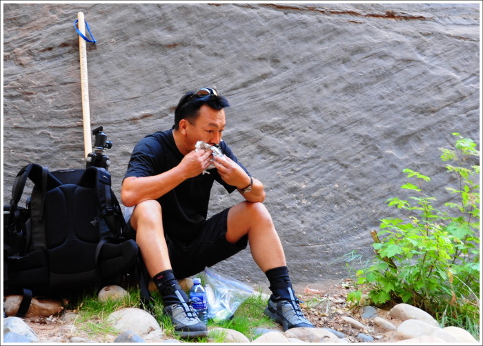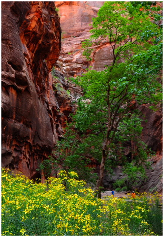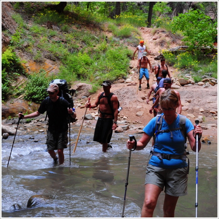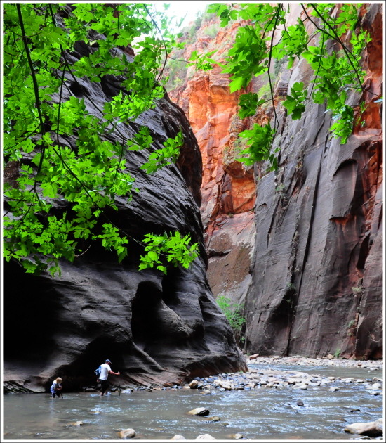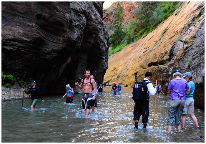 이곳의 버진 리버를 이루는 강물의 물줄기를 거슬러 올라가는 내로우(Narrows)계곡을 탐험하기로 한다.