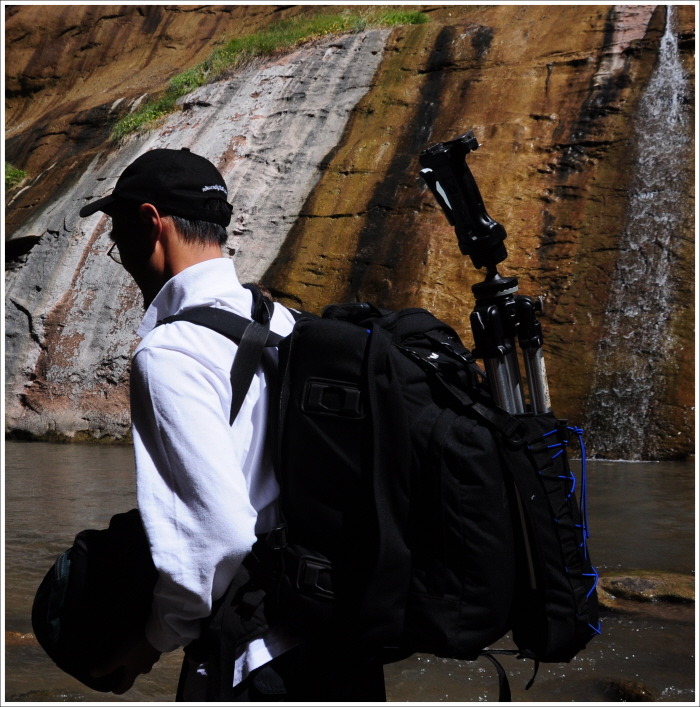 무거운 배낭을 메고.. 목에는 다시 작은 카메라를 하나 더 걸고....