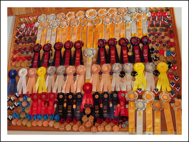시음장에 들어서니 그동안 받은 메달들이 한 벽을 가득 채우고 있네~~