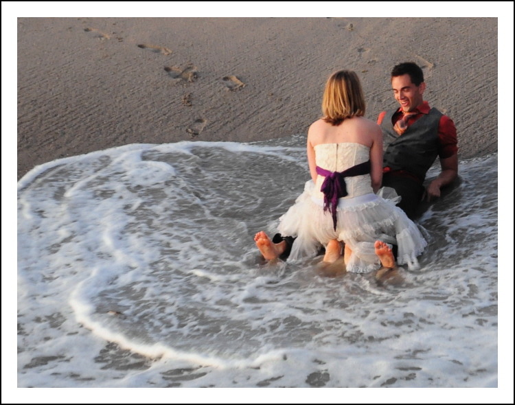 비치에서는 한 커플이 웨딩촬영을 하는 중이었다.