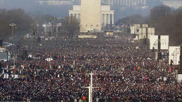 영하 7도... 체감온도 영하 13도의 워싱턴 D.C 의 행사장에 200만명의 자발적으로 모여든 군중들..