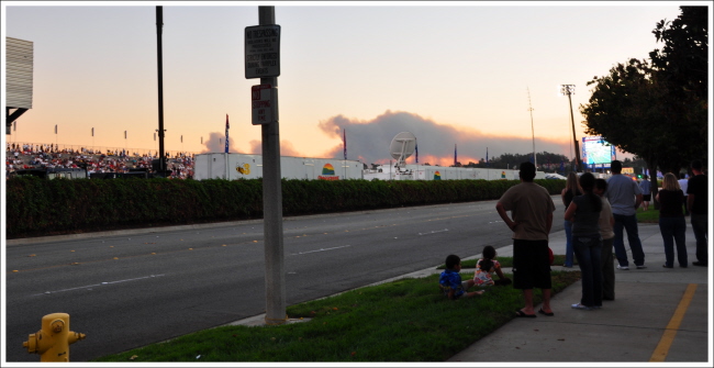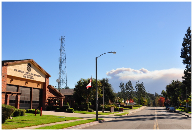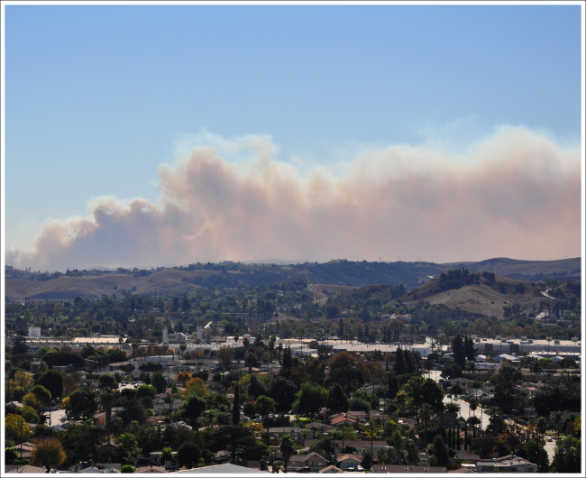 불은 오렌지 카운티의 Brea 라는 곳에 났는데 아주 먼 이곳까지도 연기가 대단하게 보입니다.