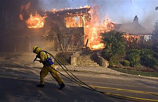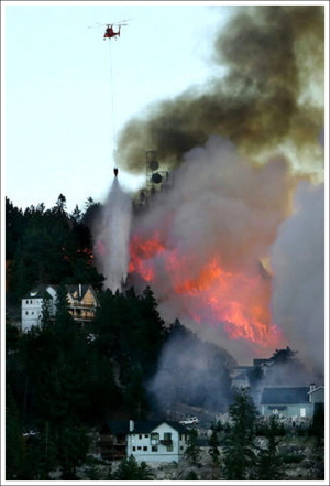많은 가옥들과 여러해에 걸쳐 자라난 나무들이 모두 타고 있습니다.