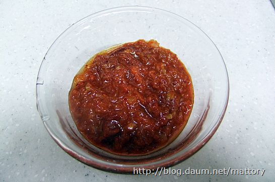 고추장(2큰술),고춧가루(2큰술),사과(간 것/2큰술),양파(간 것/2큰술),간장(1큰술),우스터소스(1큰술),참기름