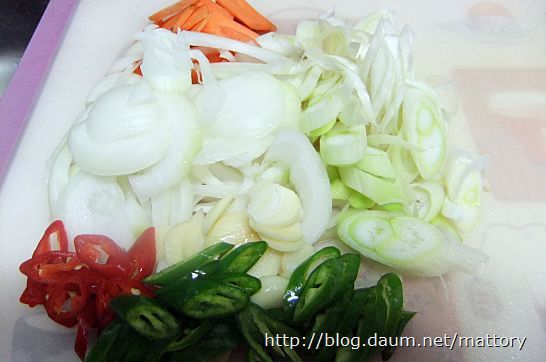 마늘은 저미고 다른 야채들은 사진처럼 썰어둡니다