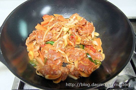 팬을 뜨겁게 달군 후 재빨리 볶습니다