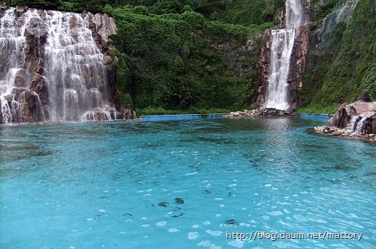 인공폭포 앞까지 갔더니 폭포가 흐르지 않고 있습니다