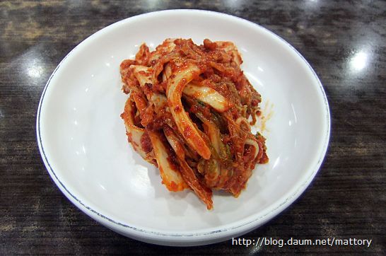 김치는 마늘 향이 강한 편이지만 칼국수와 잘 어울리는 맛을 냅니다