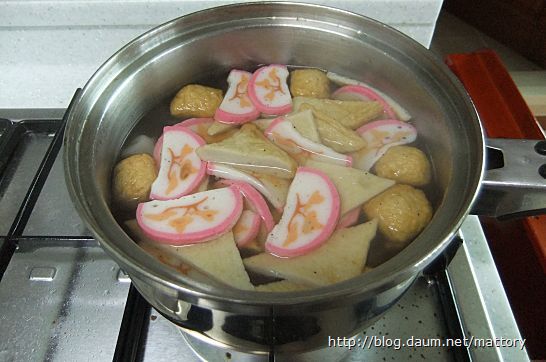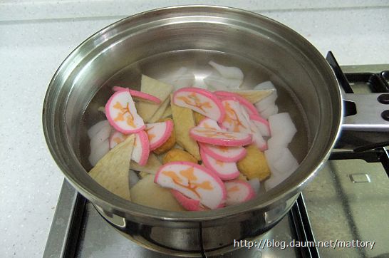 다음에 끓인 육수와 어묵을 넣으면 됩니다