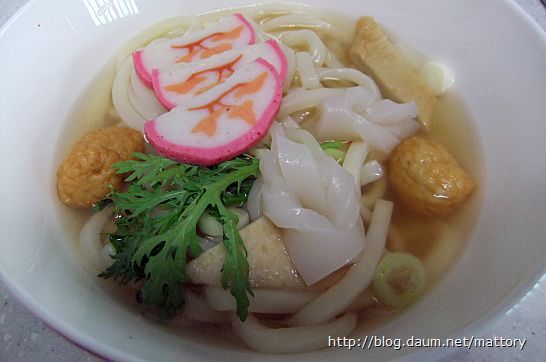 다양한 모양의 어묵과 곤약을 곁들인 어묵우동입니다