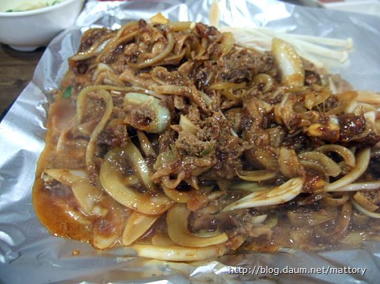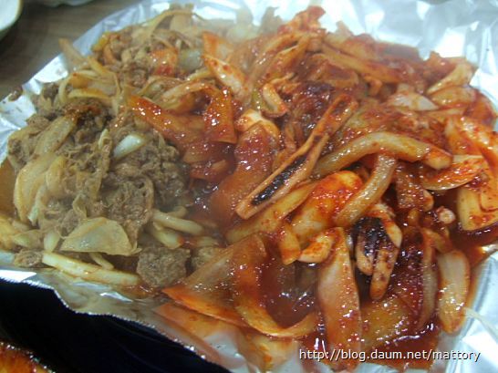 돼지불고기와 오징어불고기를 섞어서 먹으니 한층 더 감칠 맛이 좋습니다 개인적인 입맛에는 오징어보