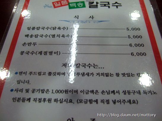 왕십리역 9번 출구 근처에 있는 칼국수 전문점으로 옆집은 설렁탕과 수육을 내놓습니다 주인은 같지만