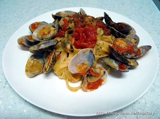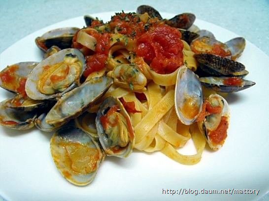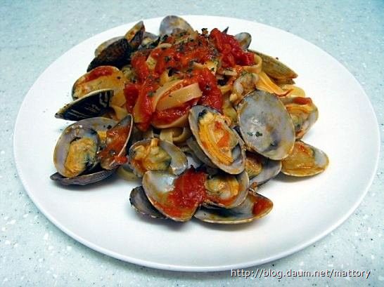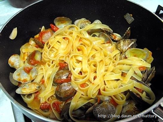 페투치니(180g),올리브유,바지락(200g),통마늘(3쪽),통후추(5알),화이트와인(1/3컵),양파(1/2개),홀토마토