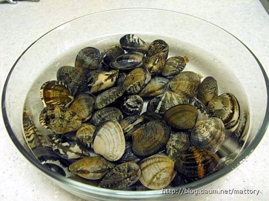 바지락을 넣고 조금 더 끓이면서 소금과 후춧가루로 간을 맞습니다