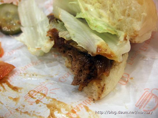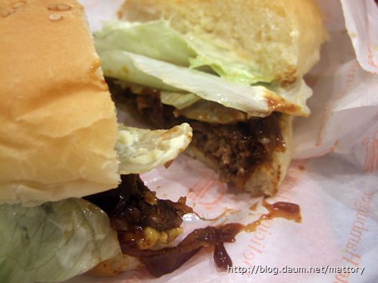소스는 적당한 단맛에 패티가 고소합니다 시중에 널려 있는 프랜차이즈 버거집들과 비교해서 아주 뛰어