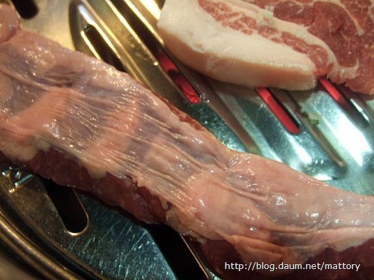 갈매기살은 막이 제거되지 않은 채로 있습니다 주인 아주머니께 막이 있으면 질기지 않느냐고 여쭤보니
