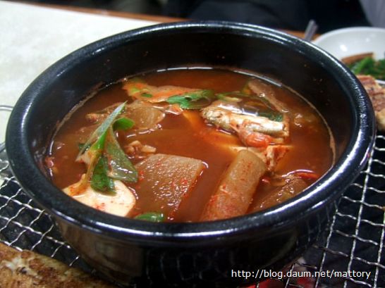 무를 큼직하게 썰어 놓고 고춧가루로 칼칼하게 국물을 내서 그런지 오징어국 맛이 나기도 합니다