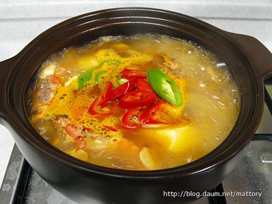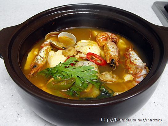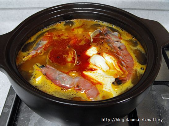 해물과 함께 끓인 시원한 연두부찌개입니다